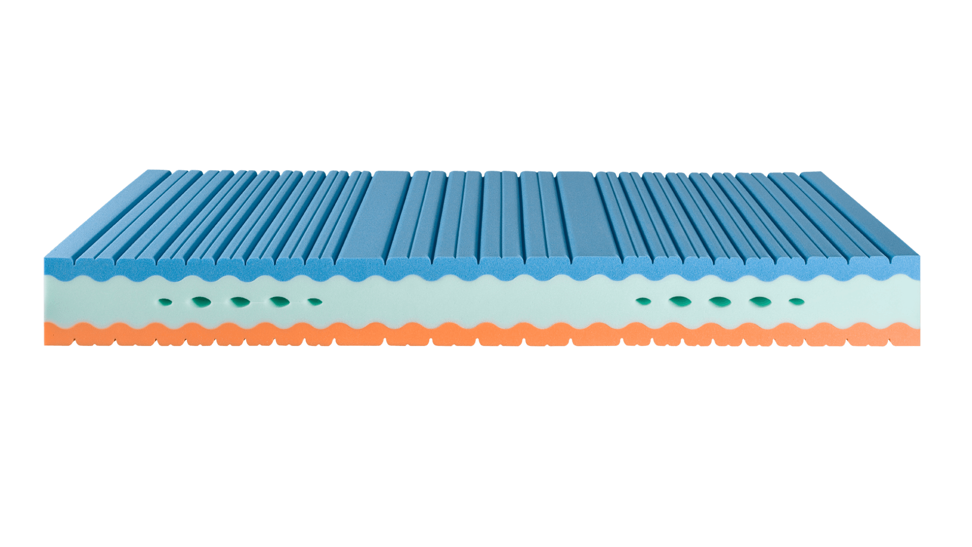 La struttura di Ipno è composta da tre strati, con il lato superiore in Geoflex™Memo, materiale automodellante che interagisce con la temperatura del corpo. Lo strato centrale è realizzato in Geoflex™ portante, che assicura stabilità durante i movimenti.
